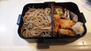 お弁当には、いつもザル蕎麦を持って行ってます。蕎麦も糖質はあるのですが、低GI食品だからということで、気にせず使ってます。